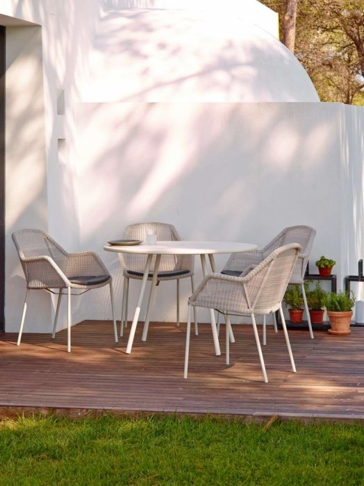 Breeze stapelbar karmstol handflätad i vår finaste konstrotting Cane-Line Weave. Denna stapelbara stol är designad av de danska formgivarna Strand+Hvass. Breeze är flätad på en klassisk rörkonstruktion vilket ger stolen en unik lätthet och elegans. Serien Breeze från Cane-Line finns i svart och vit konstrotting och innehåller karmstolar, lounge möbler avställningsbord och fotpallar.