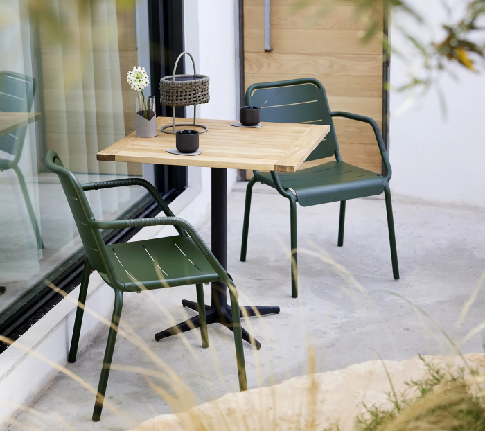 Copenhagen är en lätt aluminiumstol designad av den danska designerduon Strand & Hvass. Stolen är minimalistisk och har en modern design, vilket gör den perfekt på en modern uteplats. Copenhagen-stolen är tillverkad av slitstarkt pulverlackat aluminium, vilket ger en stark och stabil utestol som kräver minimalt underhåll, är enkel att rengöra och har lång livslängd. Copenhagen är designad för att kunna staplas och är därmed lätt att förvara.