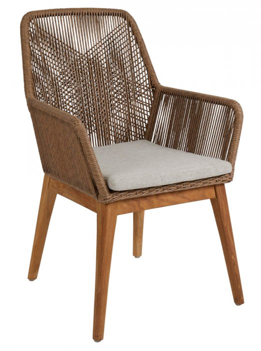 Hassel är en modern och elegant karmstol från Brafab. Hassel har ett elegant underrede i massiv teak som gör att stolen både ser nätt och stilren ur. Sitsen är vävd i tjock rund 6,5mm rund konstrotting med en utmärkt kvalitet och finish. Dynorna är sedan klädda med ett mycket slitstarkt olefintyg som klarar av vatten på ett utmärkt sätt. Dynorna bör dock skyddas från regn samt skyddas helt under höst/vinter.