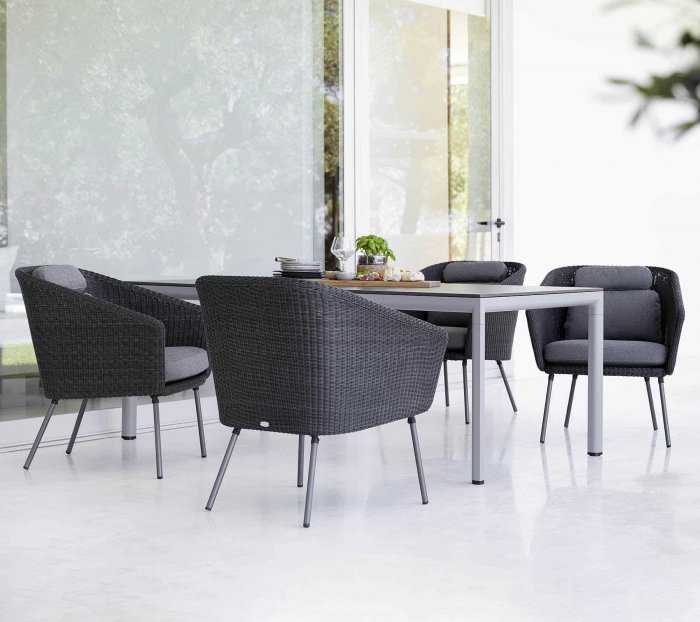 Mega är en modern stol till din matgrupp. Stolen har designats av ByKato och är en unik möbel. Den strama designen och de skandinaviska färgerna skapar ett mycket urbant utseende. Mega är tillverkad i Cane-line Weave®, vilket gör den perfekt för utomhusbruk i alla klimat eftersom materialet är temperatur- och UV-beständigt. Dynorna är gjorda i Cane-line SoftTouch® med QuickDry-system, vilket ger utmärkt komfort. Cane-line QuickDry-systemet är en speciell teknik – när det har slutat regna är dynorna torra på ungefär en timme.