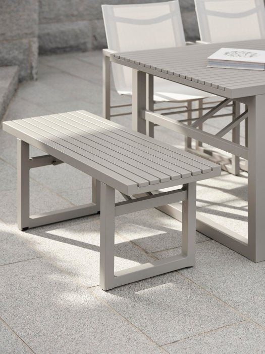 Vevi är ett elegant och modernt matbord i lackad aluminium från Brafab. Toppskivan har smala ribbor vilket ger ett modern och stilrent intryckt. Det nätta underredet ger Vevi både en modern och exklusiv känsla. Då bordet är tillverkat helt i aluminium är det helt underhållsfritt. Kombinera gärna med stolen eller bänkarna i samma serie. Välj mellan vit- eller svartlackad finish.