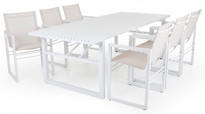 Vevi Matgrupp 230x95 cm ink 6st Karmstolar Vit