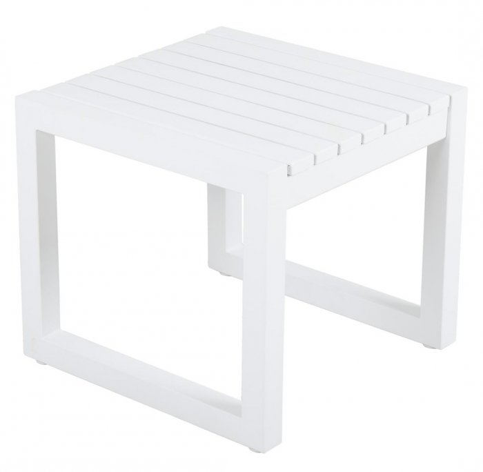 En plats för allt du behöver ha nära till hands i sommar. Ett eller flera bord mellan dina Vevi- vilsängar, eller intill din loungefåtölj. Finns i tre färger i aluminium: vit, svart, Khaki och även en version med stomme i teak.