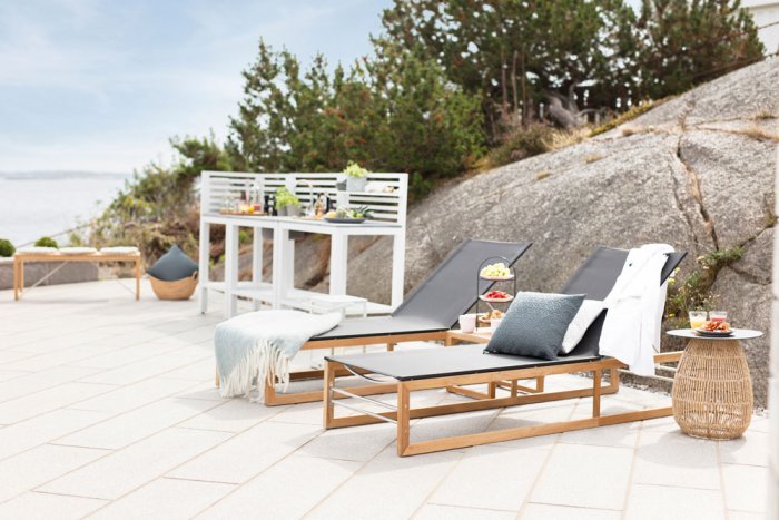 Vevi är en elegant och modern solsäng i massiv teak och textilene från Brafab. Vevi är tillverkad i den bästa sortens teak som både har en mycket fin finish och är otroligt stark. Vevi har ett snyggt designat underrede med metallbeslag i rostfritt stål. Sits och rygg i svart textilene ger en härlig komfort utan att du behöver en dyna. Missa inte bordet och stolarna i samma serie. Om du älskar teak och vill ha den finaste kvalitén och modern design så är Vevi från Brafab eller självklart val.