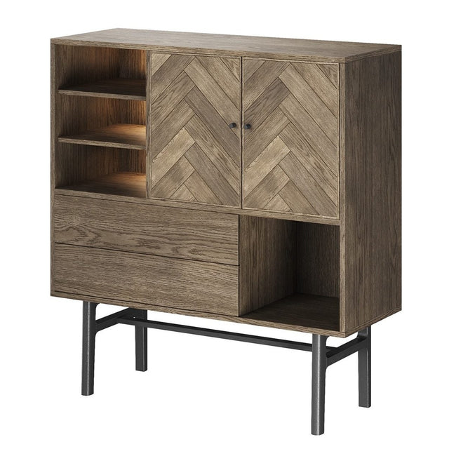 Högskåp Nr.230 Fiskbensdörrar 120x131 cm Rökoljad Ek