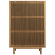 Lido är ett rymligt skåp med ren skandinavisk karaktär. Den varma lamellfronten i ekfaner ger ett lätt, elegant uttryck och döljer förvaringen på ett stilfullt sätt. Bakom fronten finns ett generöst utrymme med två hyllplan för porslin, glas, böcker eller textilier. Den höga, smäckra siluetten gör skåpet lättplacerat, lika fint i vardagsrum och matplats som i hall eller arbetsrum.