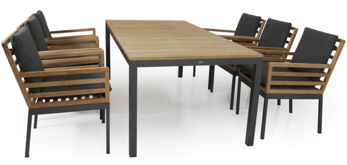Zalongo Matgrupp Teak/Grå Alu ink 6st Karmstolar