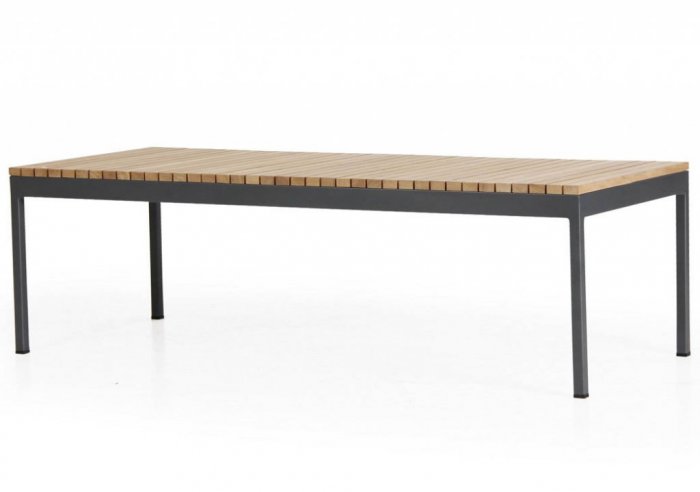 Zalongo är en mycket elegant soffbord i oljad kvalitetsteak med ett underrede i antracitlackad aluminium. Zalongo Soffbord passar till soffan med samma namn. Den är tillverkad av Brafab.