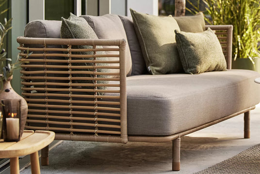 Sunbrella är ett mjukt tyg men mycket tåligt material. Sunbrella-textilier framställs med robusta prestandaegenskaper som ger motståndskraft mot blekning och skador från exponering för solens strålar och kemikalier. Tyget är hållbart, lättskött och erbjuder lång hållbarhet – oavsett var det används. Dynor klädda med Sunbrella innehåller alltid en QuickDryFoam kärna som erbjuder maximalt dränage och luftcikulation. Det gör att dynorna torkar snabbare efter en regnskur.