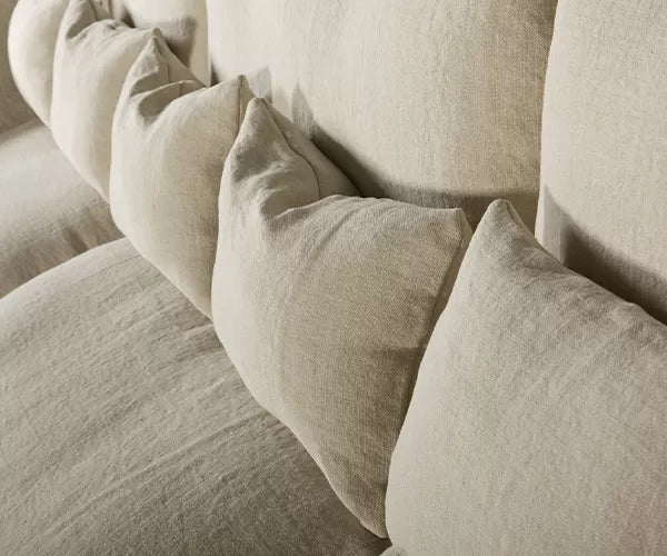 Linne skapar en naturlig och hemtrevlig känsla och är mycket slitstarkt, men tål inte hård skrynkling och passar därför inte för mjuka kuddar. Linne kan dra åt sig smuts.