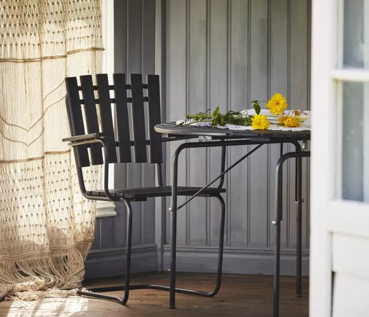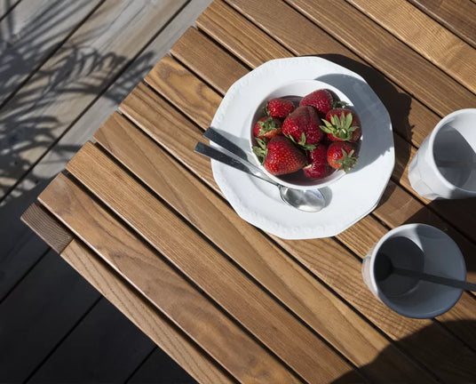 Efter en eller flera säsonger – beroende på väder, vind och hur väl du tar hand om dina möbler – kan det krävas att möbeln målas om. Slipa då ytan lätt med ett fint sandpapper för att rengöra från smuts innan du målar. Nya lasyrer för utomhusbruk finns att köpa där våra möbler säljs. Skydda dina möbler från fukt och regn så gott det går genom att placera dem skyddat under tak, eller täck över med ett möbelskydd när de inte används.