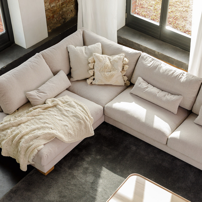 L-formad soffa som utnyttjar hörn optimalt. Ger mycket sittplats och är idealisk för större vardagsrum och sociala sammanhang.