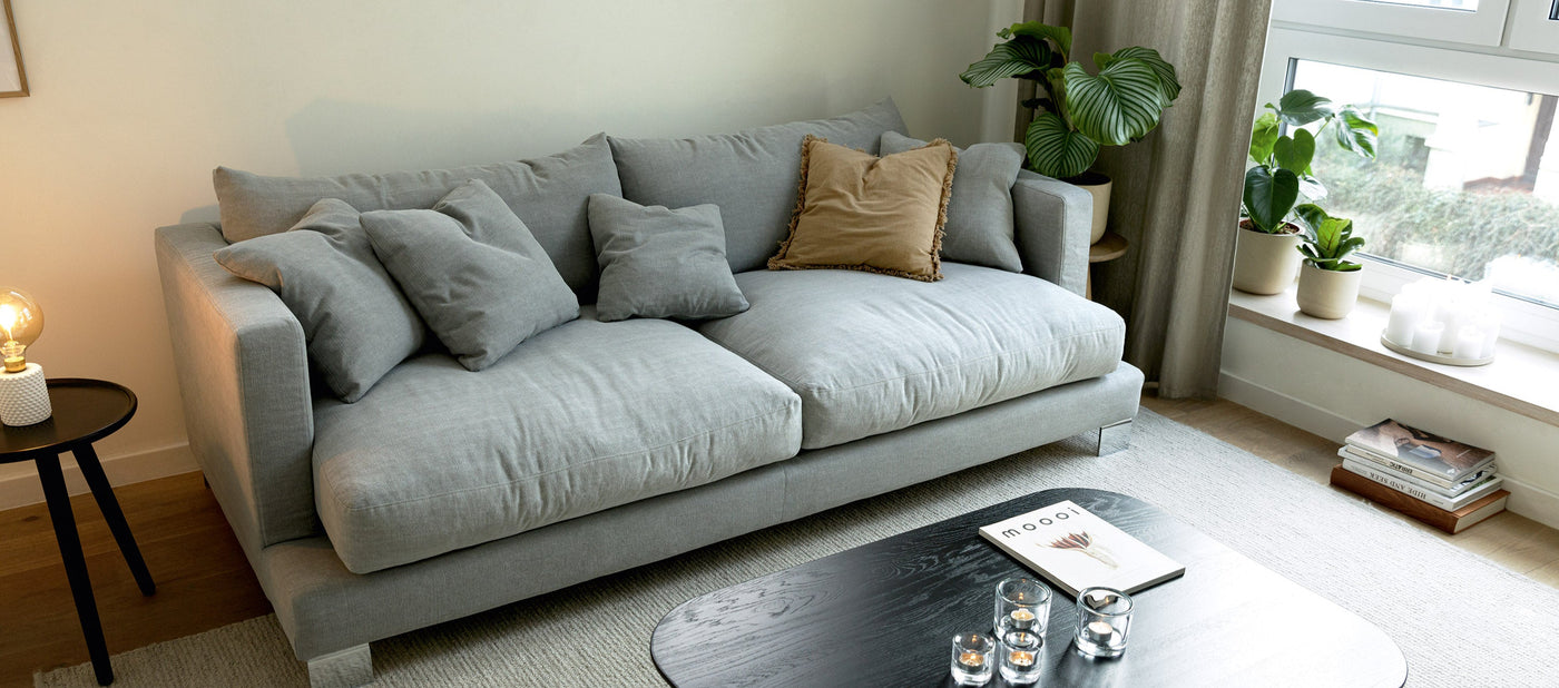 På Folkhemmet kan du antingen designa din egen soffa, eller så kan du luta dig tillbaka och lita på experterna som har designat våra snygga lagersoffor.