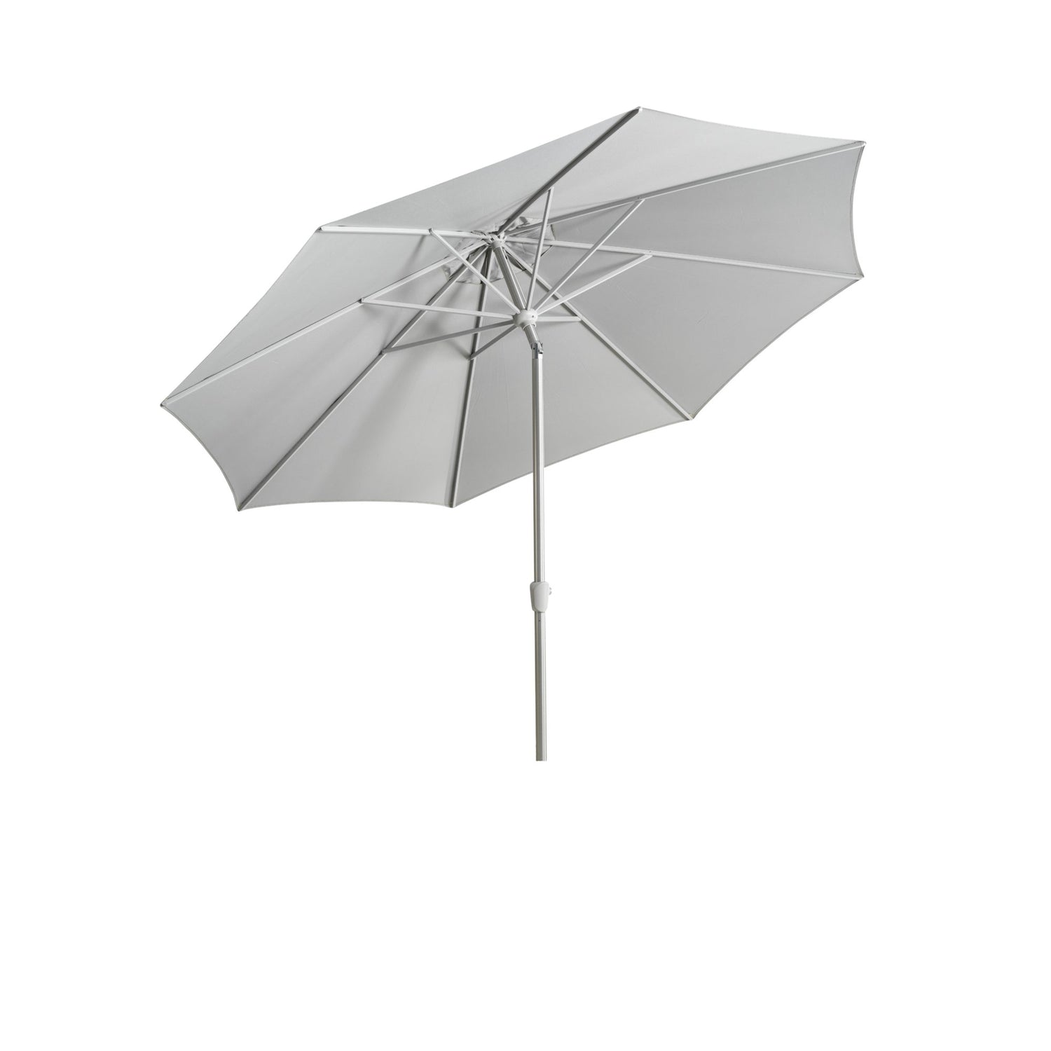 Abriola har en silverfärgad aluminiumstång i två delar med en diameter på 48 mm. Stången är utrustad med en vev och en automatisk tiltfunktion, vilket gör det enkelt att vinkla parasollen. Parasollens tak är tillverkat av 250-grams lösningsfärgat tyg, komplett med en ventilationsöppning, och stöds av 8 ribbor.