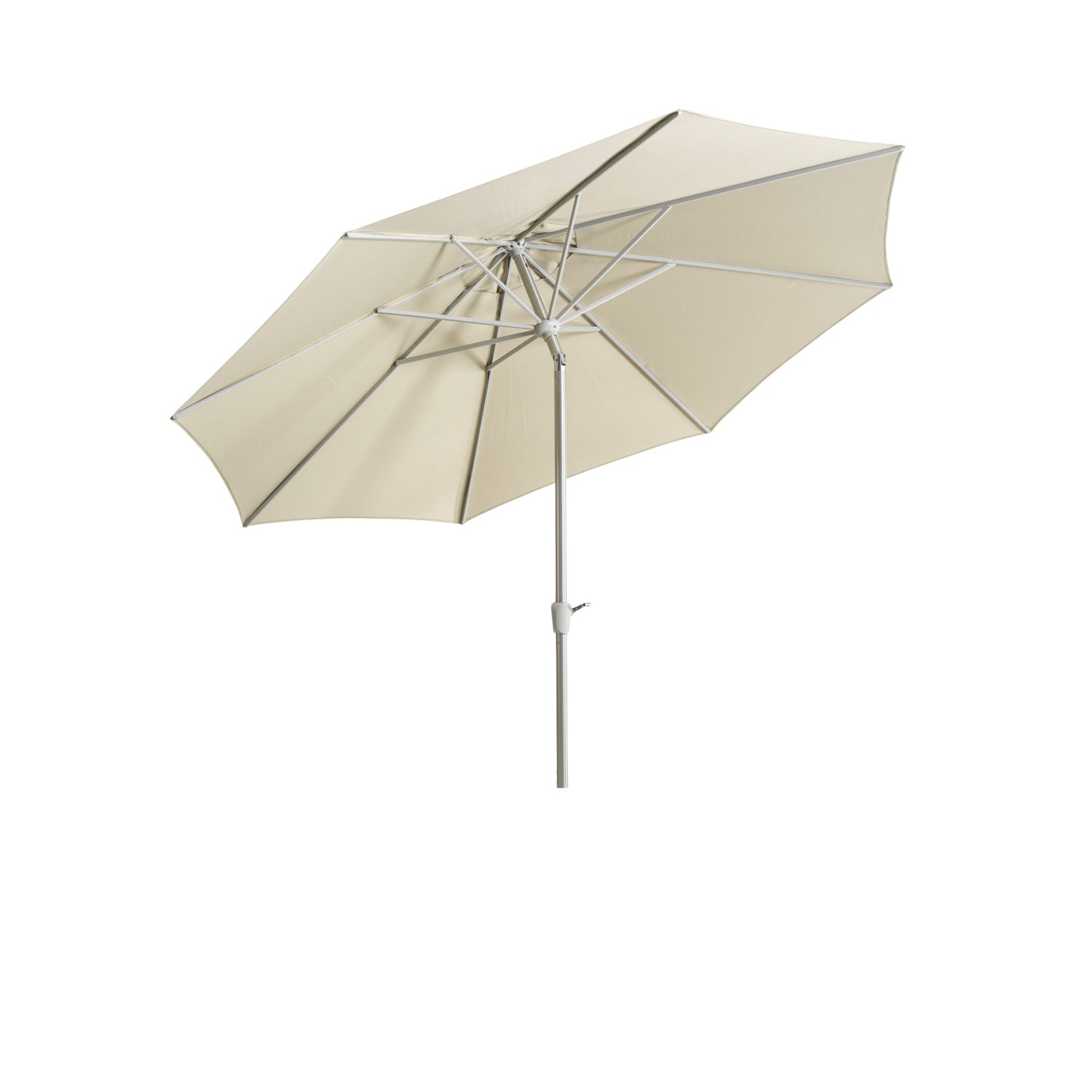 Abriola har en silverfärgad aluminiumstång i två delar med en diameter på 48 mm. Stången är utrustad med en vev och en automatisk tiltfunktion, vilket gör det enkelt att vinkla parasollen. Parasollens tak är tillverkat av 250-grams lösningsfärgat tyg, komplett med en ventilationsöppning, och stöds av 8 ribbor.