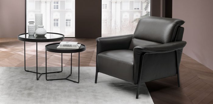 Amabile är en nätt och elegant fåtölj från Italienska Natuzzi. Den är trotts sin nätta storlek mycket bekväm och skön att sitta i. Amabile kombinerar klassisk och modern design och utstrålar en lyxig känsla. De eleganta benen är tillverkad i svartkromad metall som går upp längs med armstödet på ett snyggt sätt.