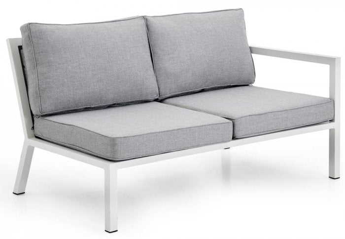 Belfort är en modern och praktisk modulsoffa i vitlackad aluminium med grå polyesterdynor/klädsel från Brafab. Tyget på soffan är av mycket hög kvalitet och klarar av småskurar men bör förvaras under tak eller i dynlåda när gruppen inte används. Stommen är helt underhållsfri och kan stå ute under hela sommarsäsongen. Belfort serien finns både med svart eller vit stomme. Nu har dynan ändrats på Belfort till ljusgrå.