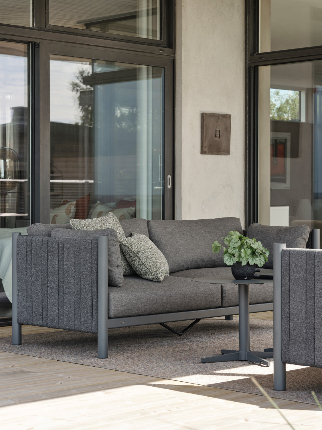 Upptäck Brad, en serie möbler som passar lika bra inomhus som utomhus. Tillverkad med material av högsta kvalitet. Komplettera sofforna med Brad soffbord och kanske till och med placera det mindre av dem som en bänk eller avlastningsyta? Finns i två färger.