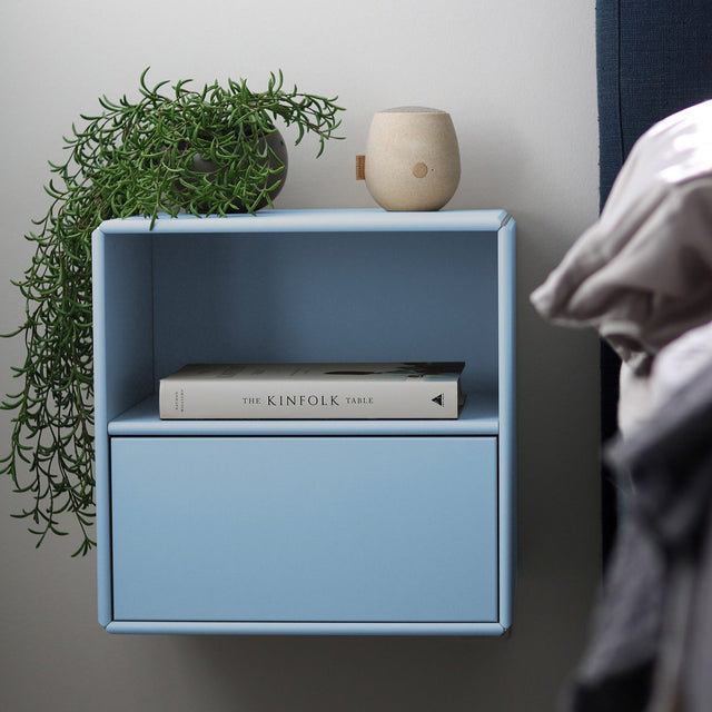 Hyllan mäter 40 cm i både höjd och bredd och är utrustad med en praktisk låda samt en öppen hylla, vilket ger plats för både sådant du vill visa upp och sådant du vill förvara mer diskret. Den kompakta storleken gör Charlie perfekt även i mindre utrymmen, utan att kompromissa med varken stil eller funktion.
