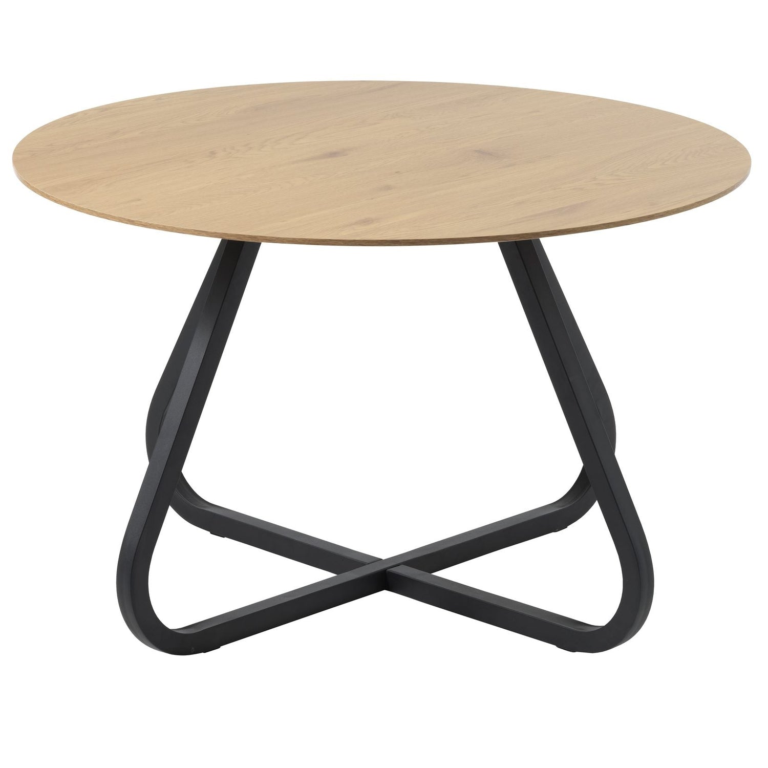 Classico är ett runt matbord i ren, skandinavisk stil. Den naturtrogna skivan i ekmelamin ger varm träkänsla och är samtidigt lätt att hålla ren. Den svarta trumpetfoten i pulverlackerad metall ger stabilitet och gott benutrymme runt hela bordet. Med 100 cm diameter sitter 3–4 personer bekvämt, perfekt för kök, mindre matplats eller som social mittpunkt i vardagsrummet.