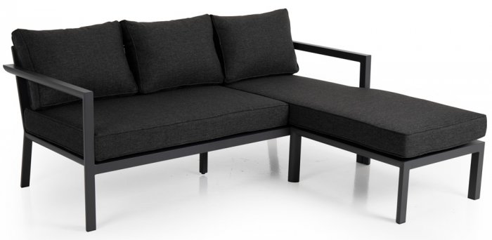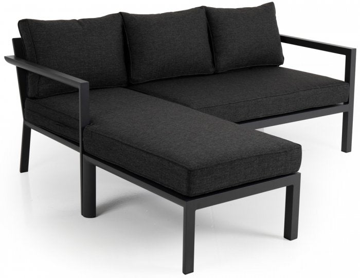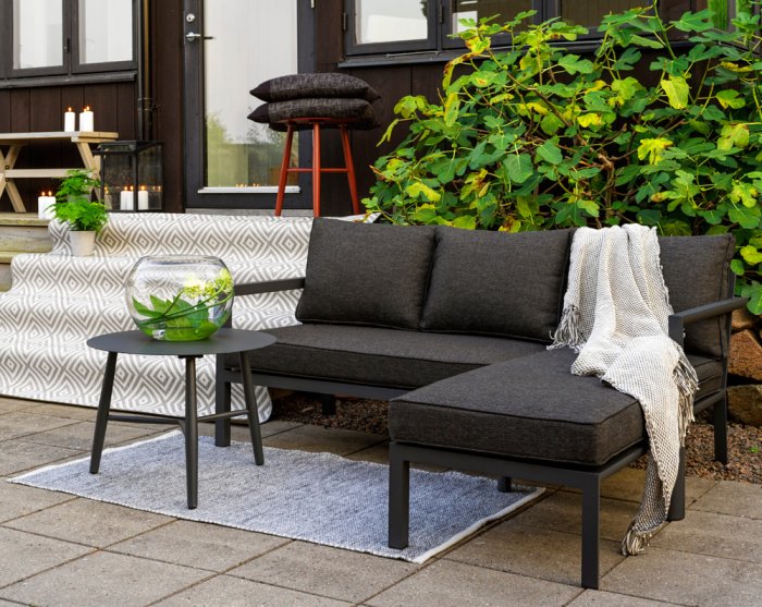 Du kan vända så får divanen på antingen höger eller vänster sida. De nätta måtten gör den utmärkt för en balkong eller mindre uteplats.