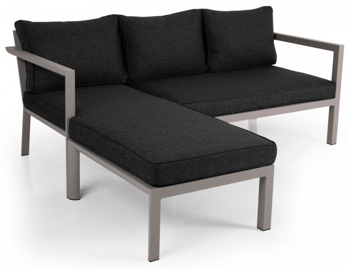 Du kan vända så får divanen på antingen höger eller vänster sida. De nätta måtten gör den utmärkt för en balkong eller mindre uteplats.