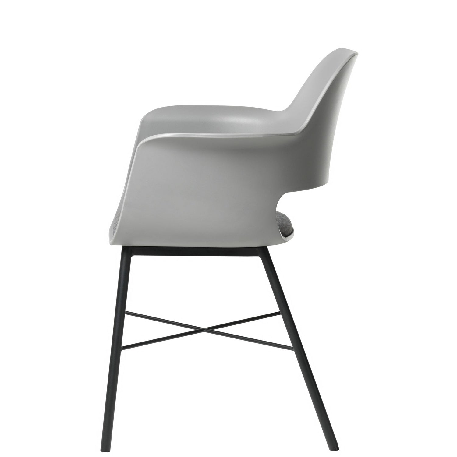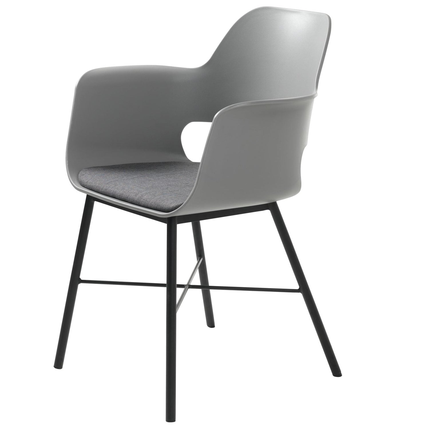 Diamante i grått är karmstolen som gör matplatsen lika bekväm som den är stilren. Det formgjutna skalet ger en mjukt omslutande känsla, medan de integrerade armstöden och den vadderade sitsen bjuder in till långa middagar, möten eller fokuserat hemmakontor. Den skandinaviska, rena linjeföringen kombineras med ett slankt metallstativ som ger stabilitet utan att ta plats, lätt att matcha, lätt att tycka om.