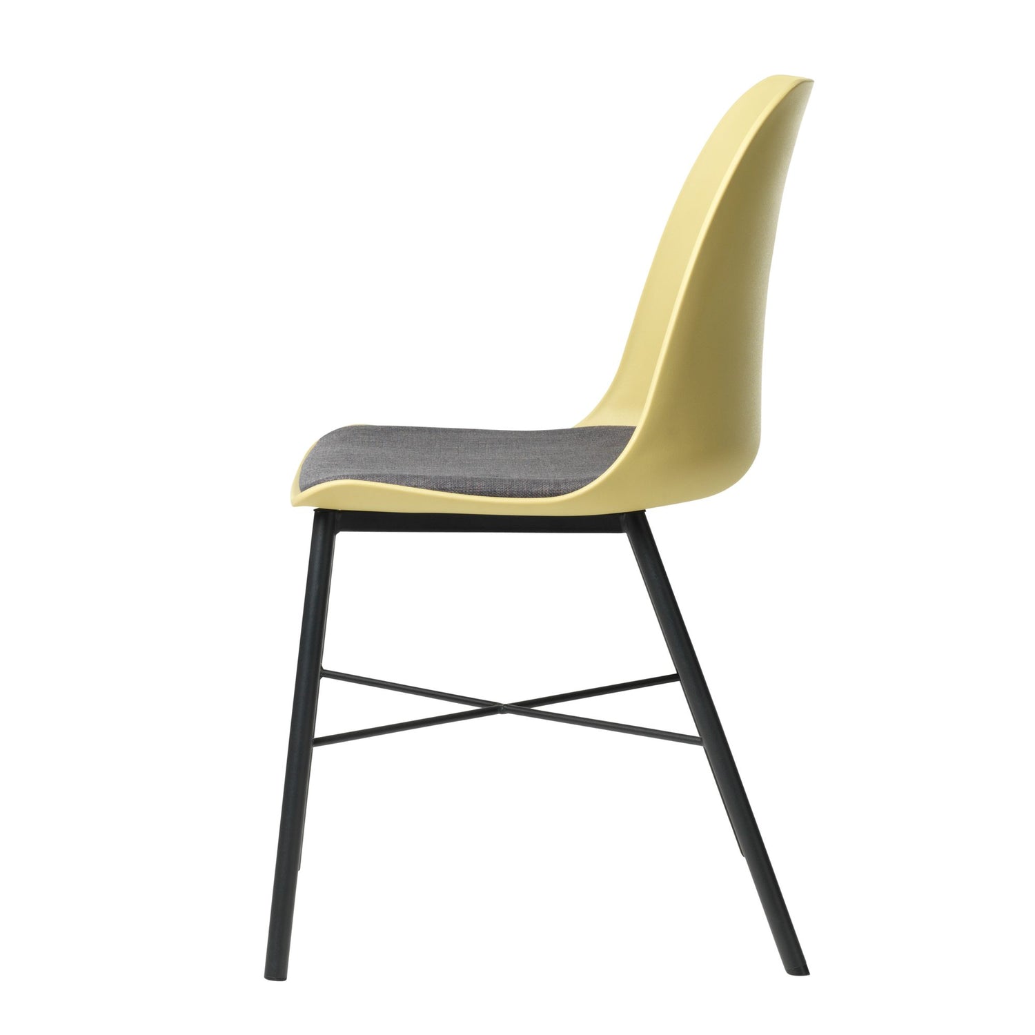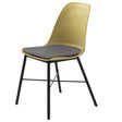 Diamante i dammig gul adderar värme och energi utan att bli skrikig. Den omslutande skalformen och vadderade sitsdynan bjuder in till långa, härliga middagar. Underredet i svart metall ger en stilsäker kontrast och en lätt, modern siluett.