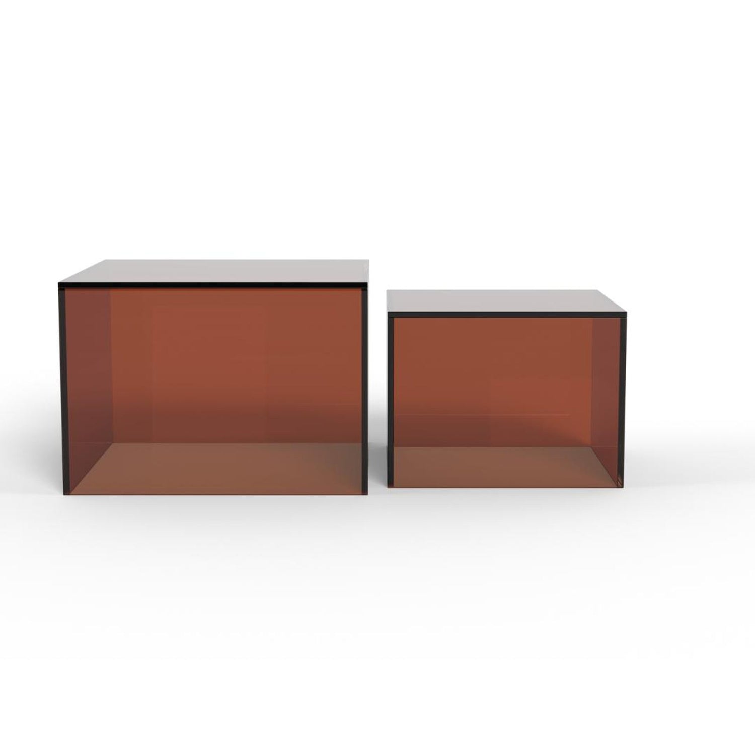 Tillverkat helt av brunt härdat glas, kommer denna fyrkantiga soffbordsuppsättning att värma upp vardagsrummet. Uppsättningen består av två fyrkantiga bord i två storlekar, vilket erbjuder olika styling och användningsändamål. Oavsett om de står ensamma eller tillsammans, ger de ett lager-på-lager, lättviktigt utseende till vilket rum som helst.