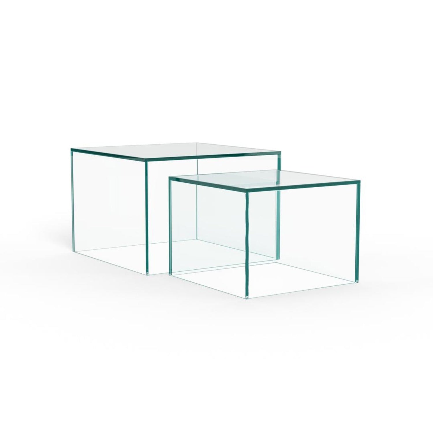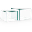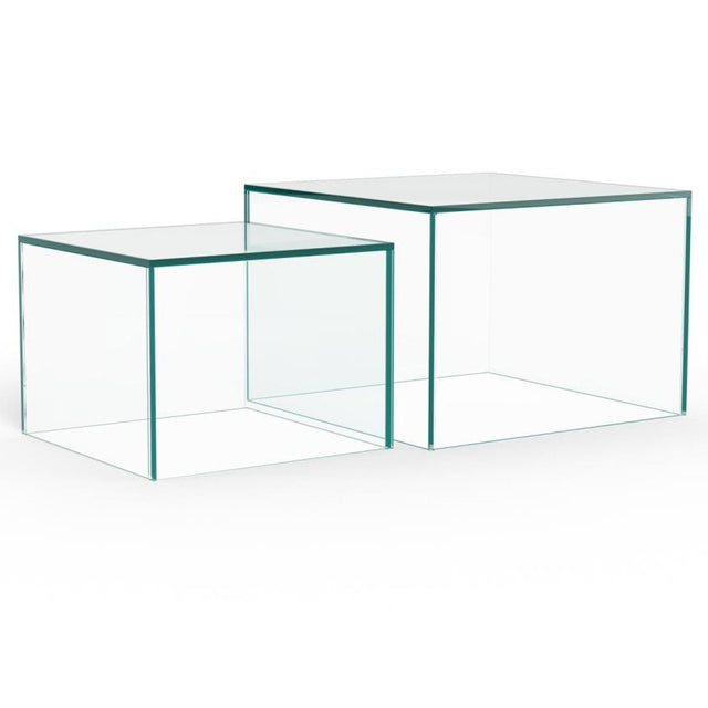 Tillverkat helt av klart härdat glas, kommer denna fyrkantiga soffbordsuppsättning att lysa upp vardagsrummet. Uppsättningen består av två fyrkantiga bord i två storlekar, vilket erbjuder olika styling och användningsändamål. Oavsett om de står ensamma eller tillsammans, ger de ett lager-på-lager, lättviktigt utseende till vilket rum som helst.