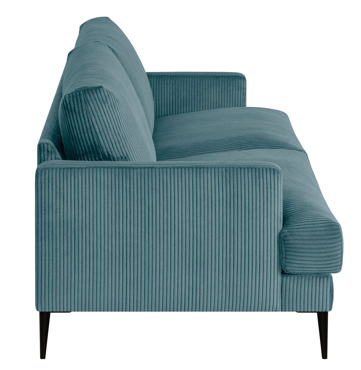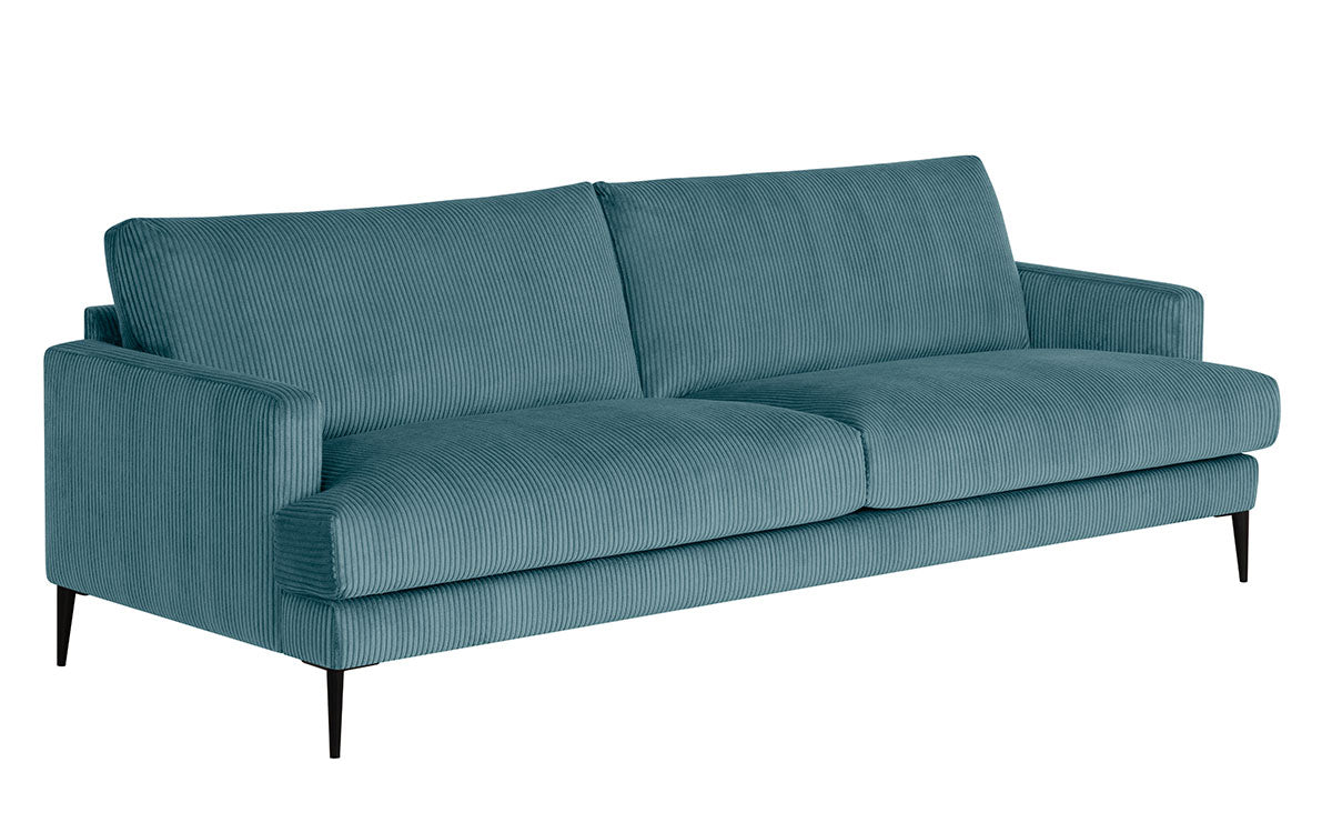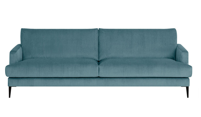 Dis är en modern och nätt 3 sits XL soffa som förenar form och funktion på ett självklart sätt. De eleganta, smala armstöden ger ett minimalistiskt uttryck och gör soffan lätt att möblera med. Klädseln är Lincoln Petrol, ett mjukt och slitstarkt manchestertyg med tydlig ribb och en djup petrolton som ger rummet ett lugnt och stilrent intryck. De svarta metallbenen lyfter formen och adderar en modern känsla. De bärande delarna av stommen är i massivt trä vilket gör soffan stabil och hållbar.