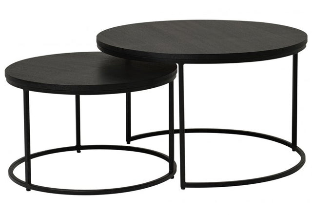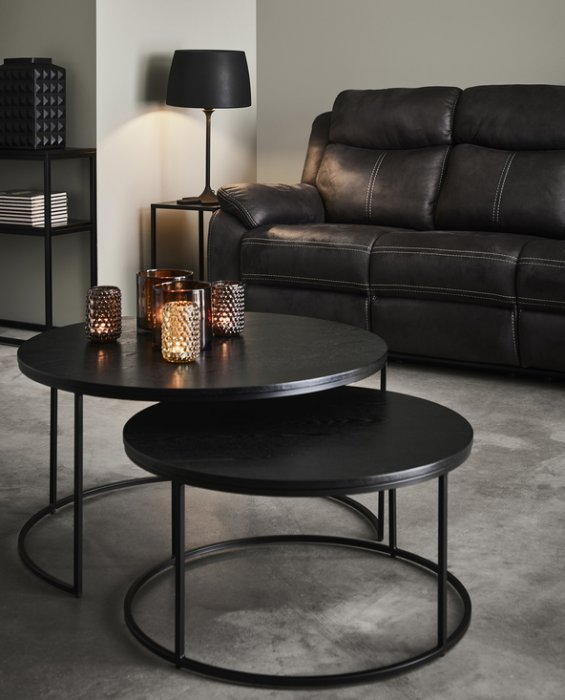 Duett är ett elegant och modernt runt satsbord från Nordic Furniture Group. Borden har snygga toppskivor i svartbetsad lackad ask och underreden tillverkade i svartlackad metall. I detta set ingår två stycken runda bord enligt bild. Det mindre bordet är 47 cm i diameter och 31 cm högt.