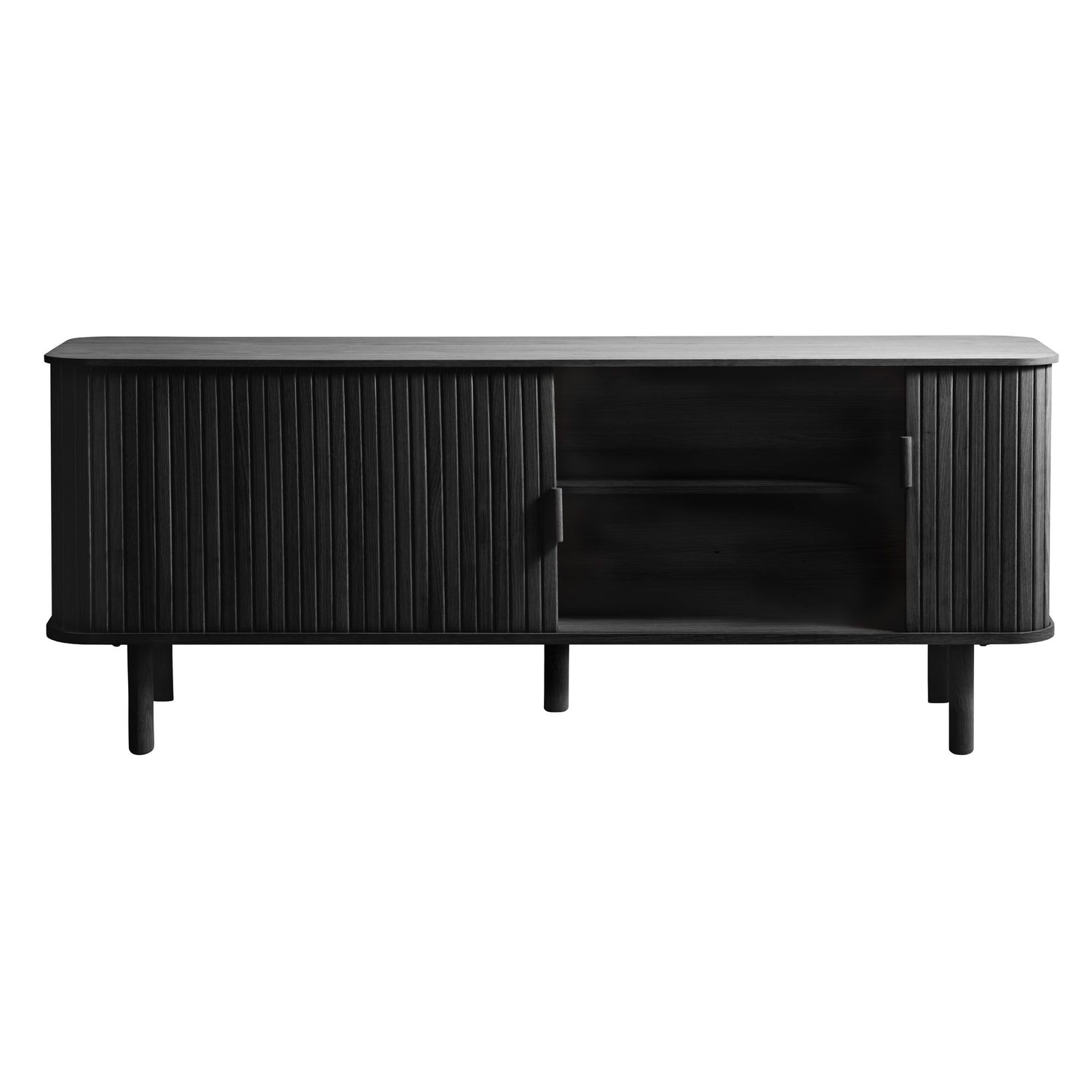 Eleganza i svart ekfaner ger ett grafiskt, modernt statement. Den svarta träytan låter räfflingen träda fram med djup och struktur, medan de rundade hörnen mjukar upp helheten. På 160 cm rymmer bänken all din teknik bakom en enhetlig front, för ett rent och stilrent uttryck i vardagsrummet. Stabilt underrede med träben ger en solid känsla utan att upplevas tung.