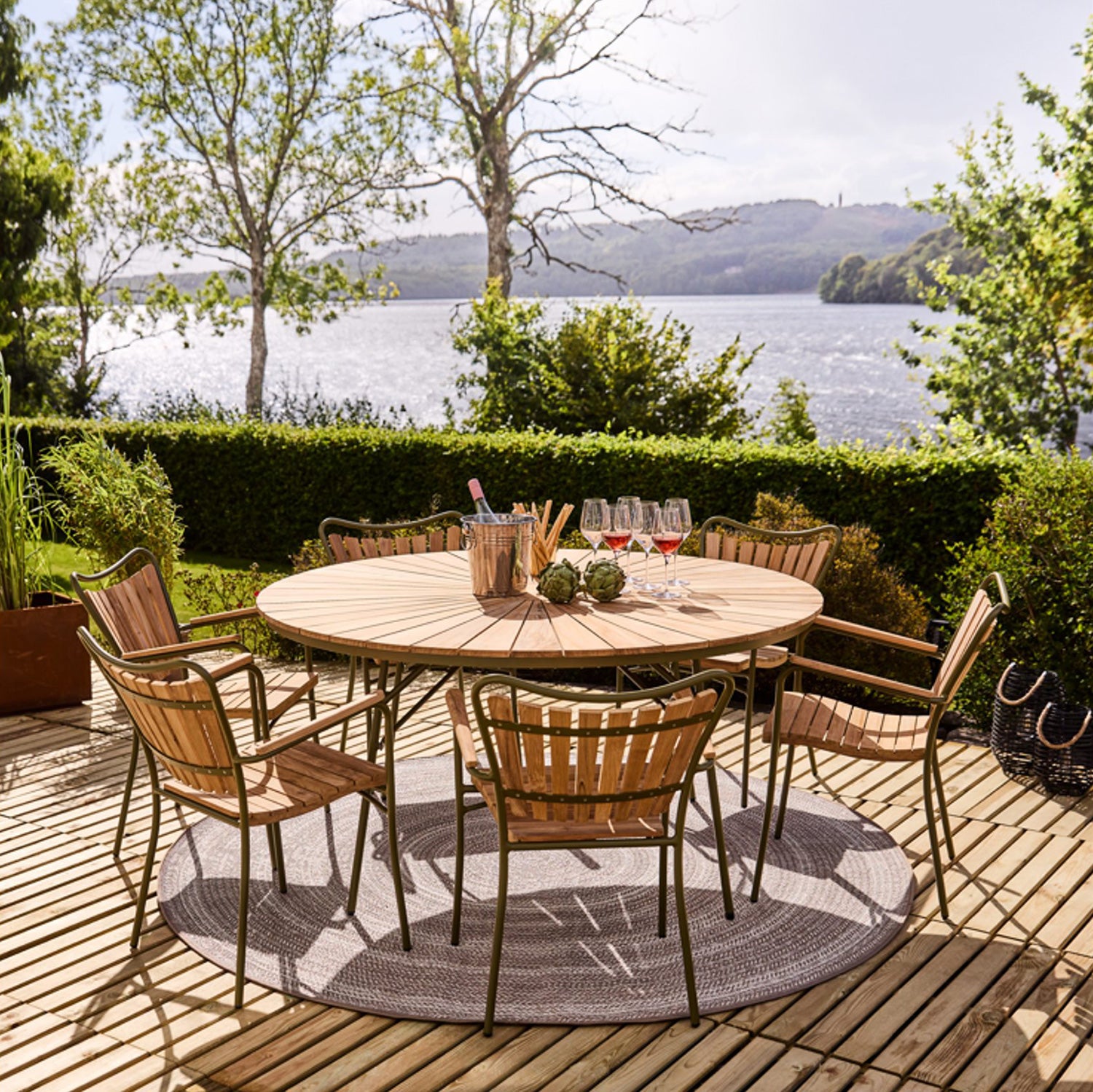 Ellen trädgårdsbord är en stilig blandning av naturlig teak och pulverlackerad aluminium. Inspirerad av 1950-talets design, ger dess mjuka linjer en harmonisk känsla i din trädgård.