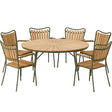 I detta set ingår Ellen matbord 150cm i grön aluminium och teak med 6st Ellen stolar i samma finish.
