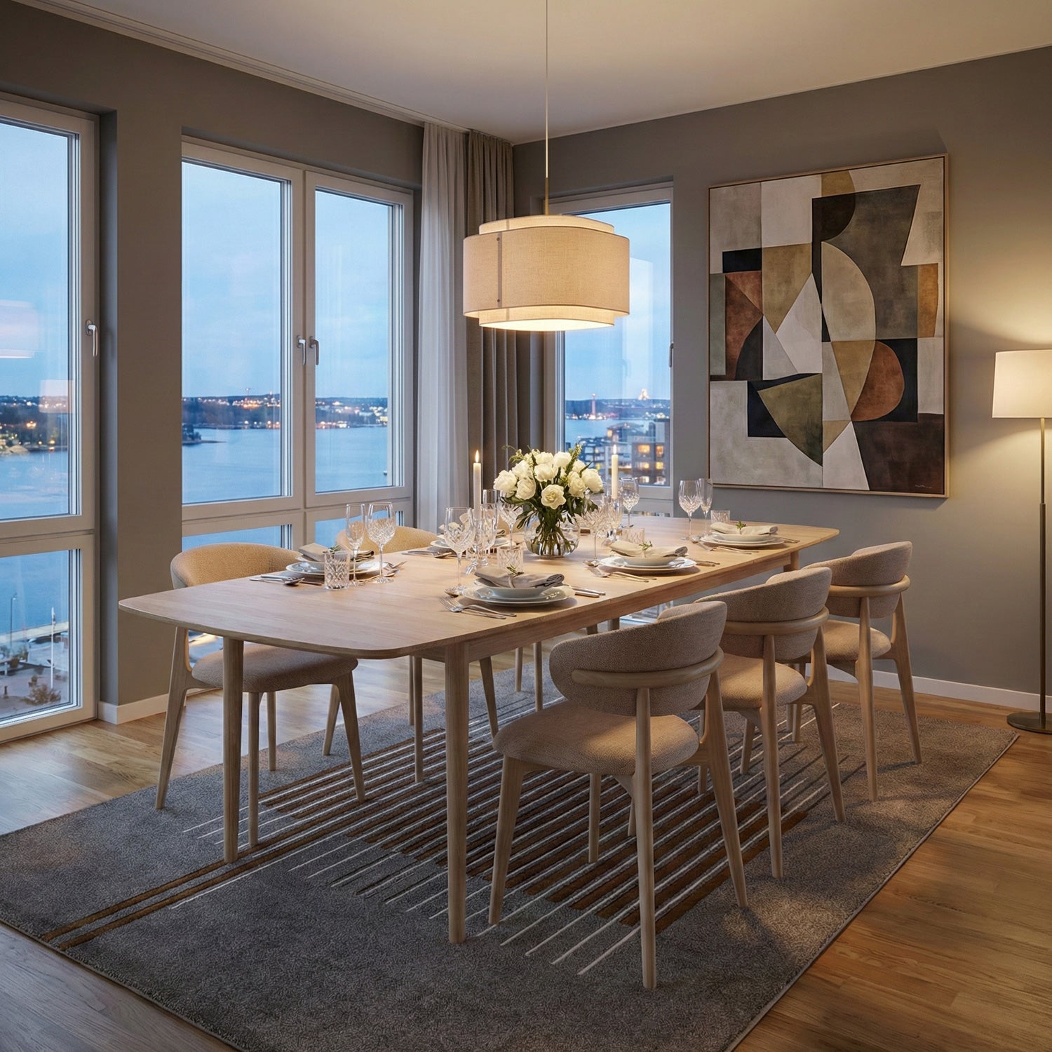 Ellinor är en stilren och genomtänkt matstol i massiv ek, skapad för att ge både vardag och middagsstunder en extra känsla av komfort. Den mjuka, stoppade sitsen gör att du kan sitta bekvämt även under längre måltider, medan den halvhöga, omslutande ryggen ger ett naturligt stöd som känns både avlastande och behagligt. Formen är elegant men ändå diskret, med koniska ben och mjukt rundade linjer som gör att stolen smälter in i de flesta hem och kan kombineras med såväl moderna som mer klassiska matbord.