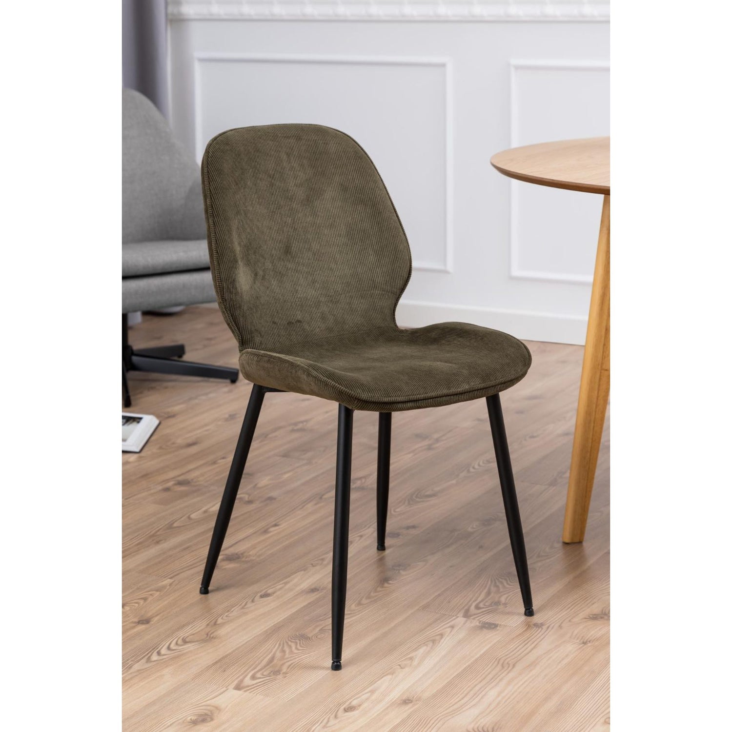 Lägg till elegans till din matplats med våra olivgröna matstolar i mjukt manchestertyg. Med sina mjuka kurvor skapar de en tilltalande silhuett runt ditt matbord.