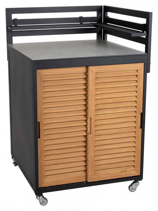 Fornax är ett premium utekök i svart aluminium med luckor i teak och topp i högtryckslaminat. Designad för ett modernt boende och med många smarta funktioner.
