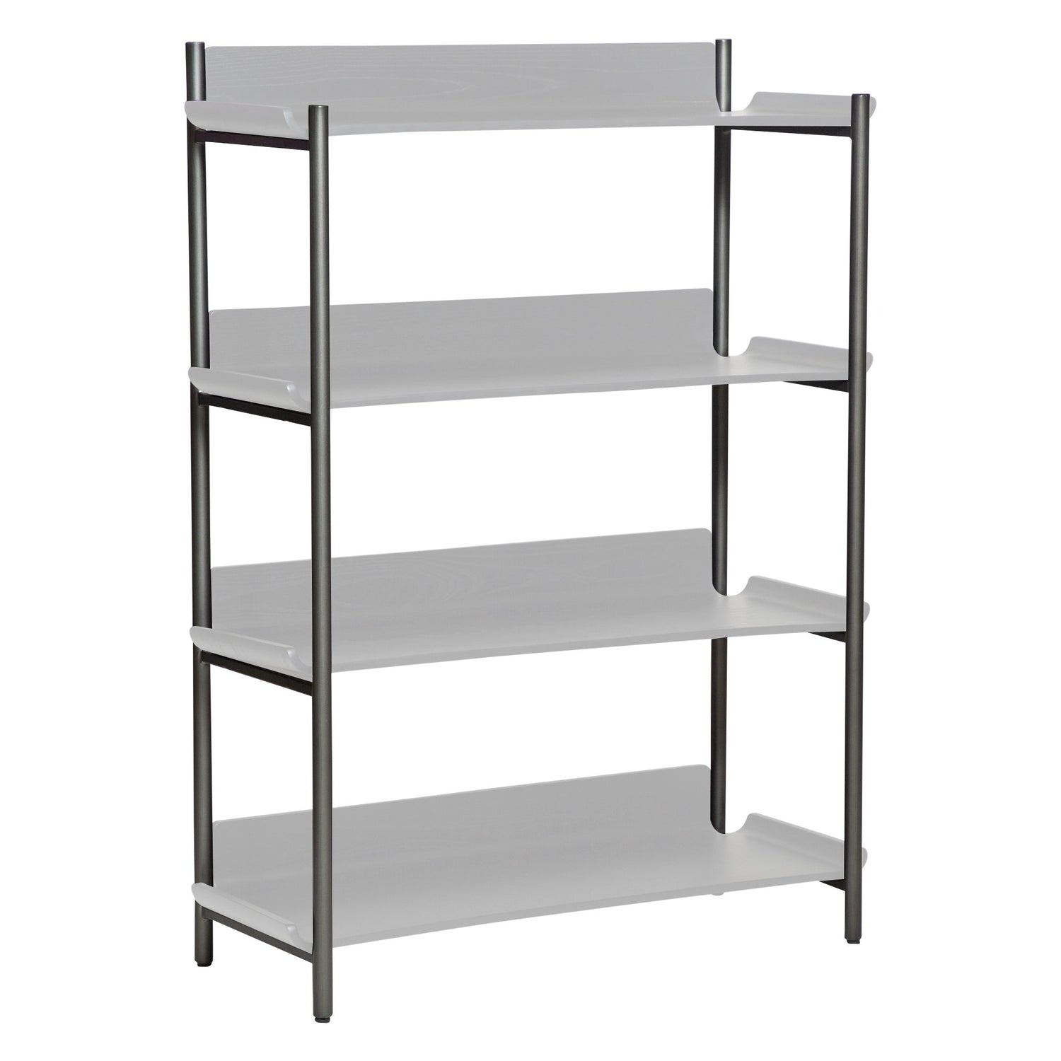 FRIYAY bokhylla med 4 hyllor av Georgsen erbjuder ett lekfullt och nutida utseende med hyllor av fanerat böjträ. Blanda och matcha hyllorna med din favoritfärg för ramen. OBS: Detta artikelnummer inkluderar endast ramen. Vänligen lägg också till hyllorna för att komplettera bokhyllan.