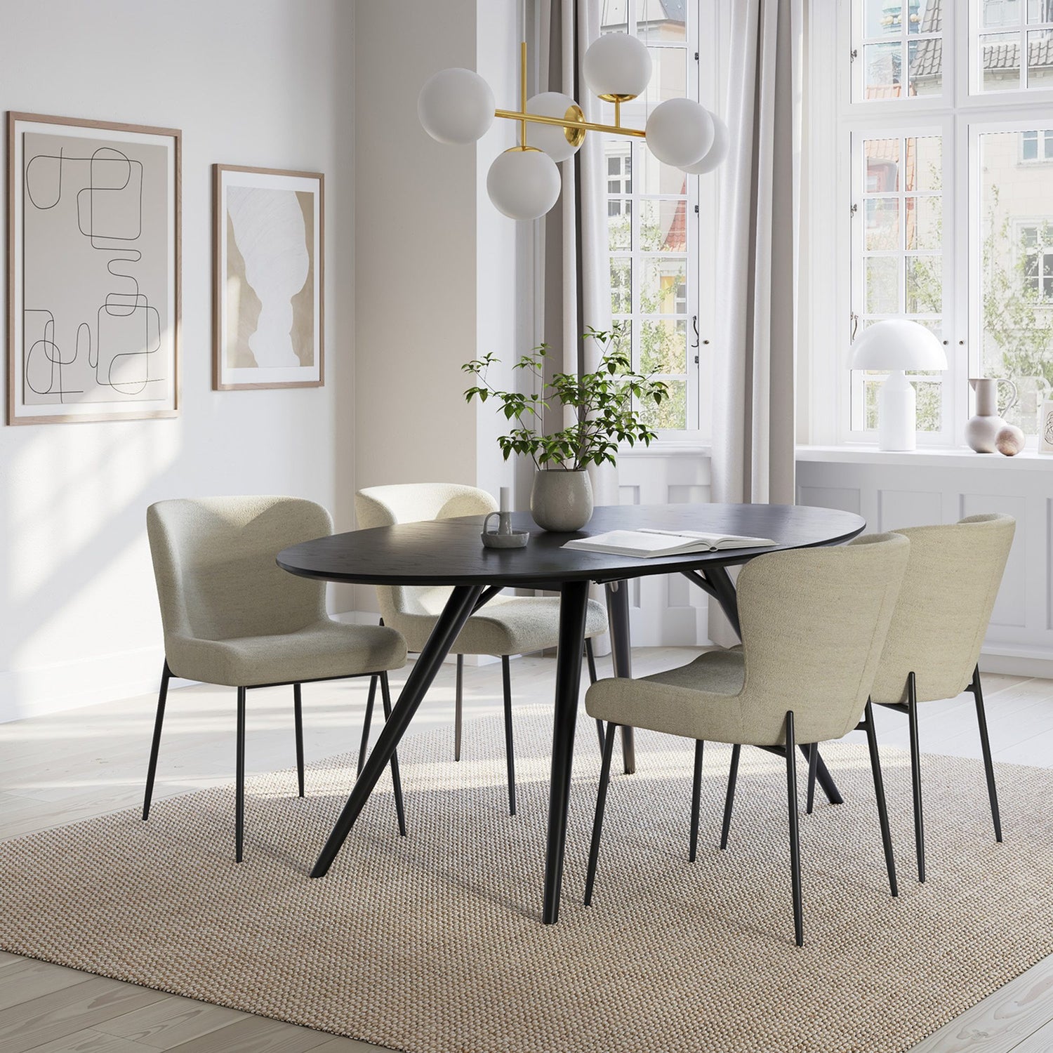 - Klädsel: i bouclétyg, ett bekvämt material känt för sin unika, loopade struktur och rika, taktila känsla.