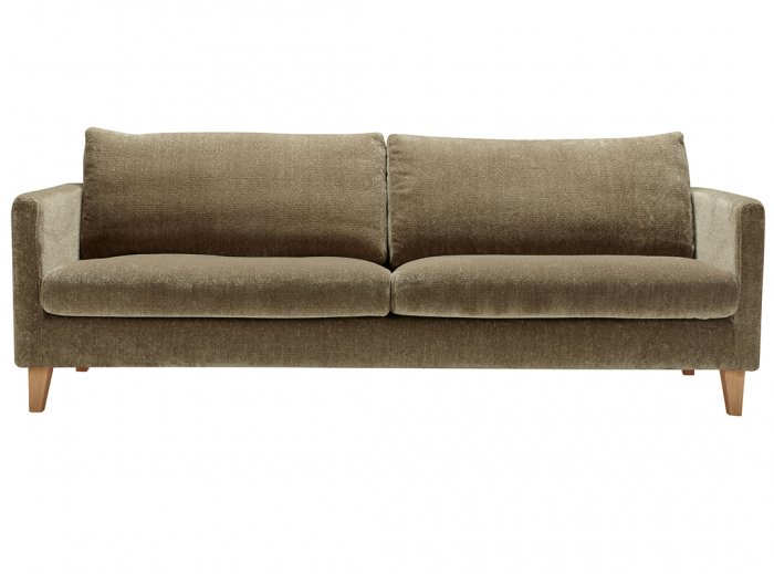 I detta utförande får du Impulse 3-Sits soffa med luxstoppning i i det exklusiva tyget Sky Gold Beige med med ben i massiv ek (Ben 109) (helt enligt bild). Soffan har även de smalare armstöden (8cm) som ger en nätt känsla. Klädseln på stommen och kuddarna är avtagbara där tyget på stommen sitter fast med kardborre (LCV). Du kan välja att köpa andra ben separat. Kontakta kundtjänst om du vill ha mer information om det.