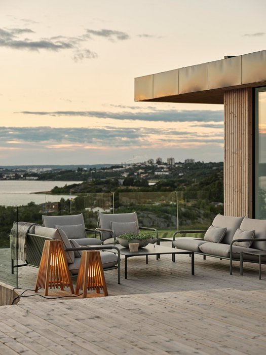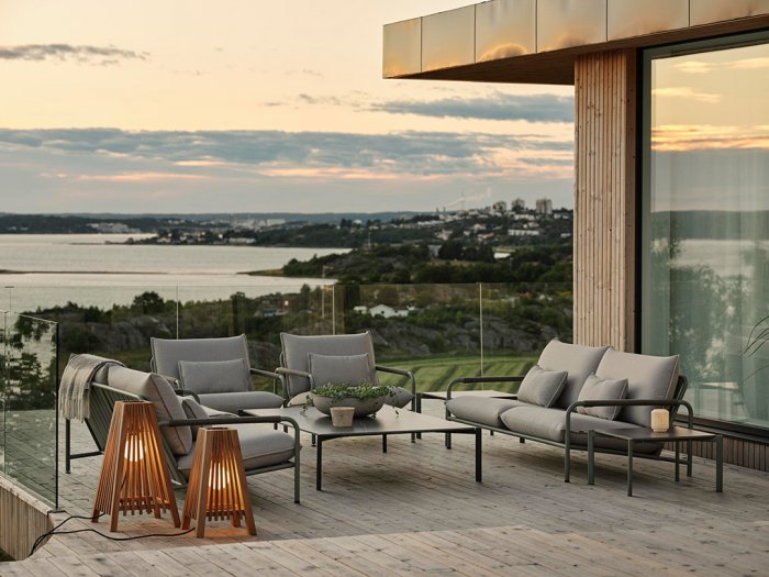 Lerberget är en premiumserie utöver det vanliga, både i kvalité och design. När de bästa möjliga materialen möter genomtänkt design i varje detalj har du en soffgrupp som inte bara drar blickarna till sig, här sitter du även mer bekvämt än någonsin. Stomme i rostfritt i två sobra nyanser, breda dekorativa ribbor under extra sköna kuddar och vackra detaljer i armstöden – denna grupp kommer att göra sig perfekt på alla uteplatser den möter.