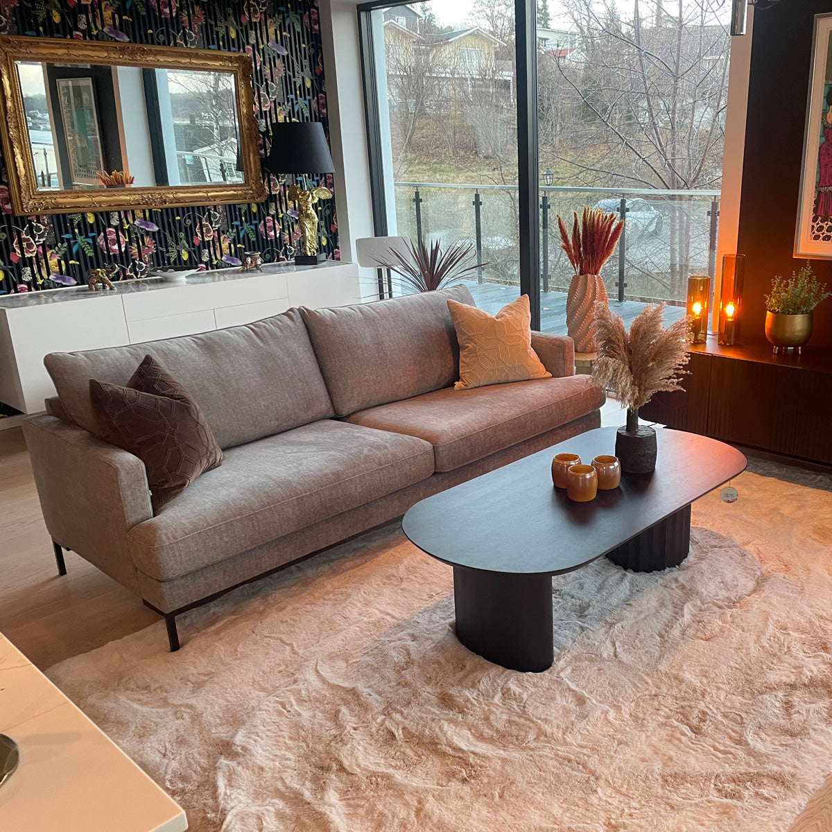 I detta utförande är Luciana klädd i tyget Vogue Taupe. Tyget är tidlöst, slitstarkt och har en nätt struktur som ger soffan liv och karaktär.