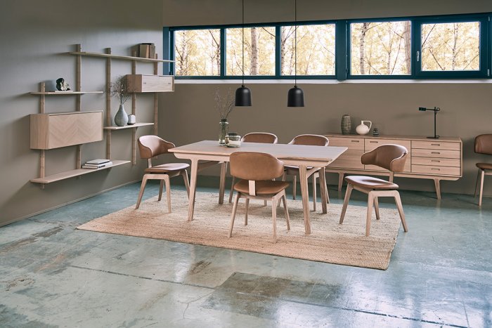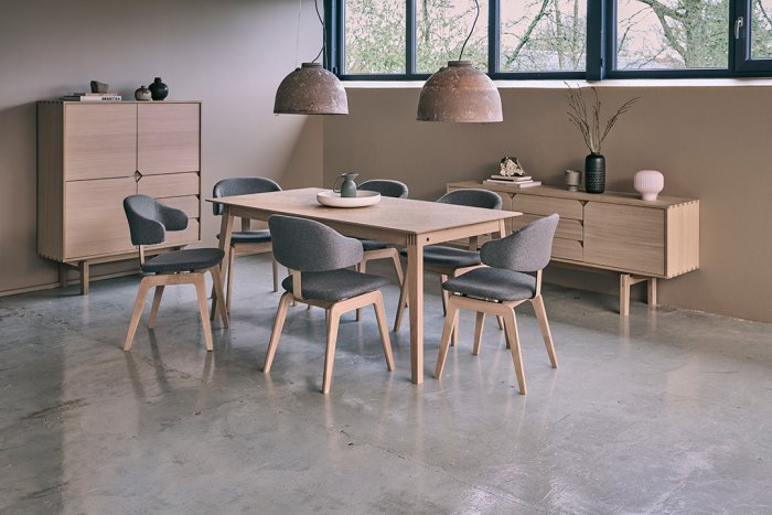 Stomme i ljus ek, svart ek eller valnöt. Välj mellan olika tyger som klädsel eller varför inte tidlös och praktiskt läder. Kombinera så det passar just din matgrupp. Maior är tillverkad av det danska designmärket PBJ Designhouse.