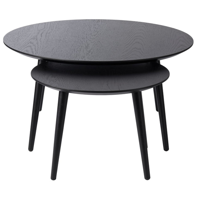 Marilyn i svart adderar en grafisk, modern touch. Den matta svarta finishen framhäver den slanka formen och gör setet enkelt att matcha med både ljusa och mörka soffor. Borden kan stå delvis överlappade eller separeras när du vill sprida ut ytorna.
