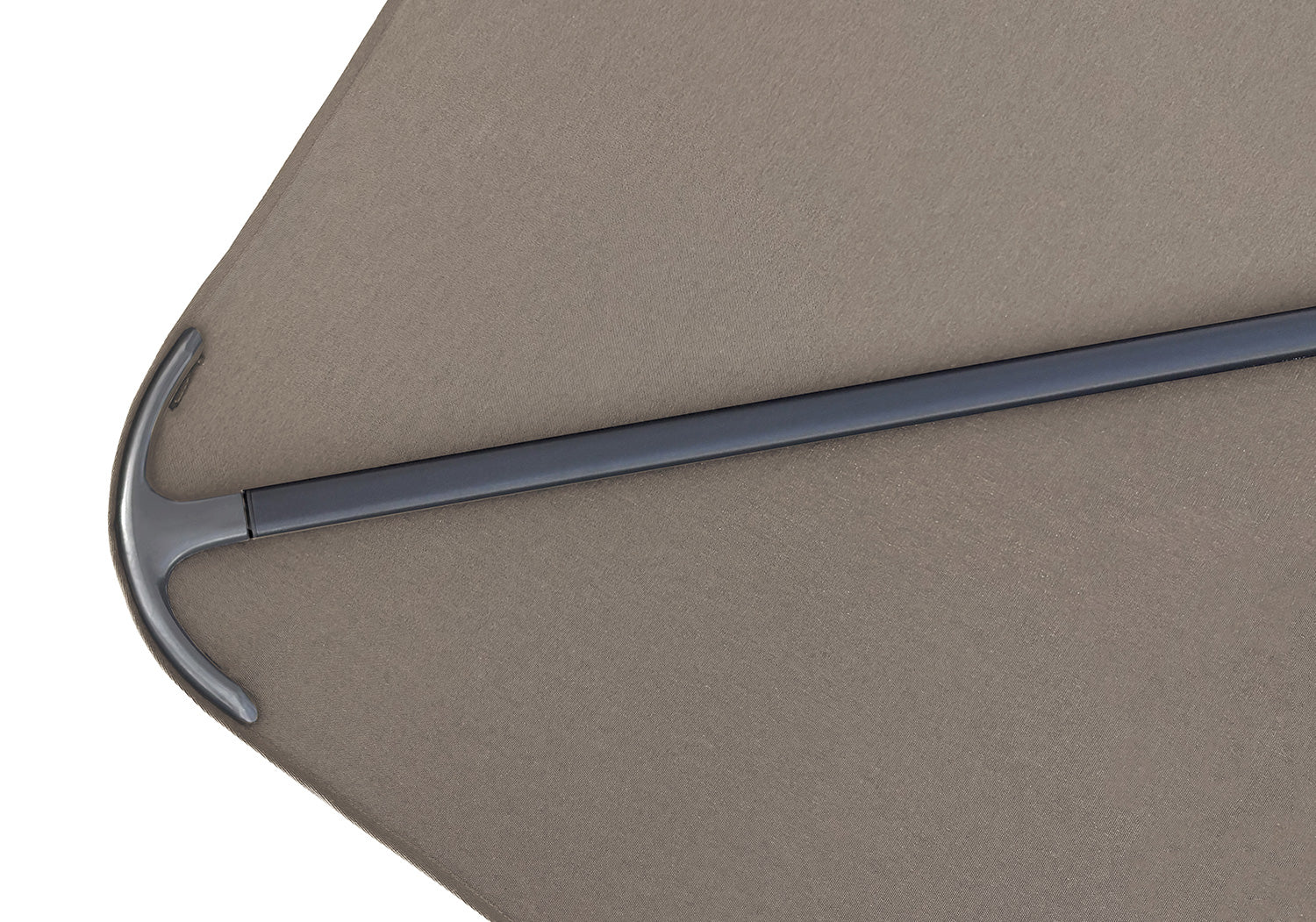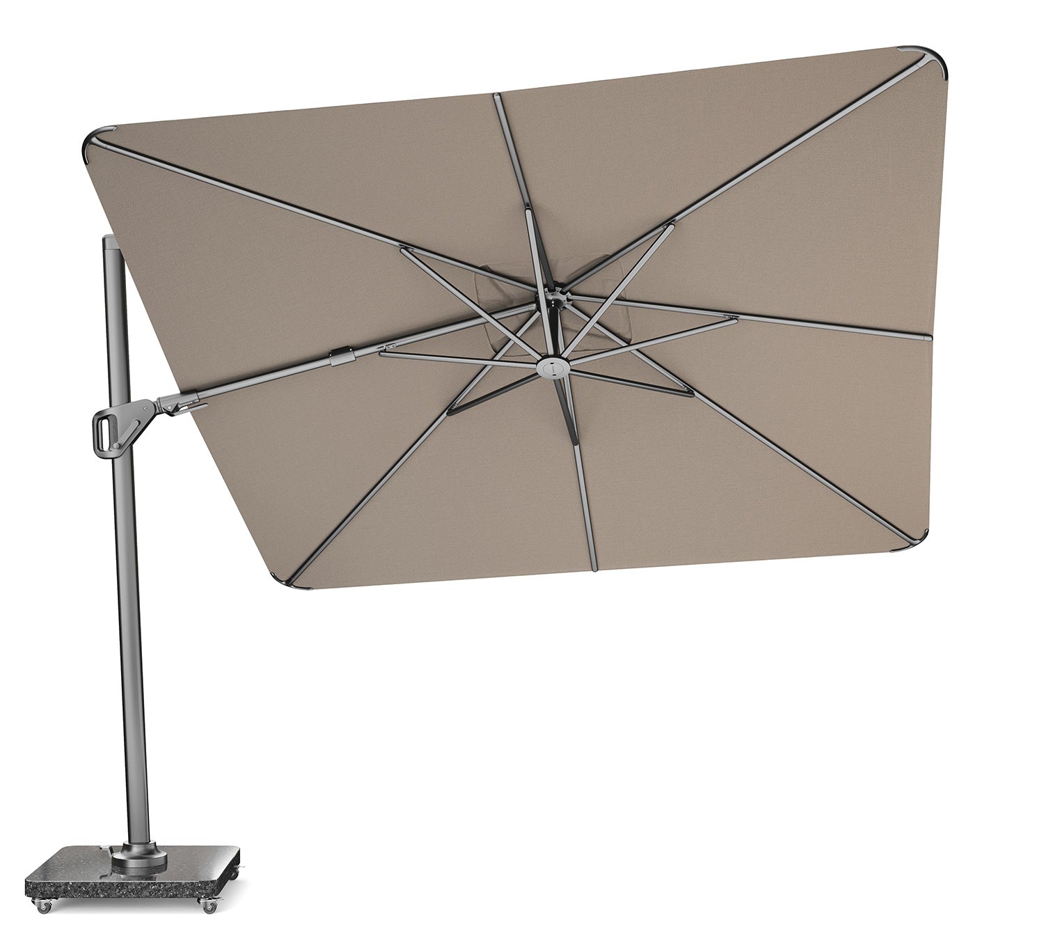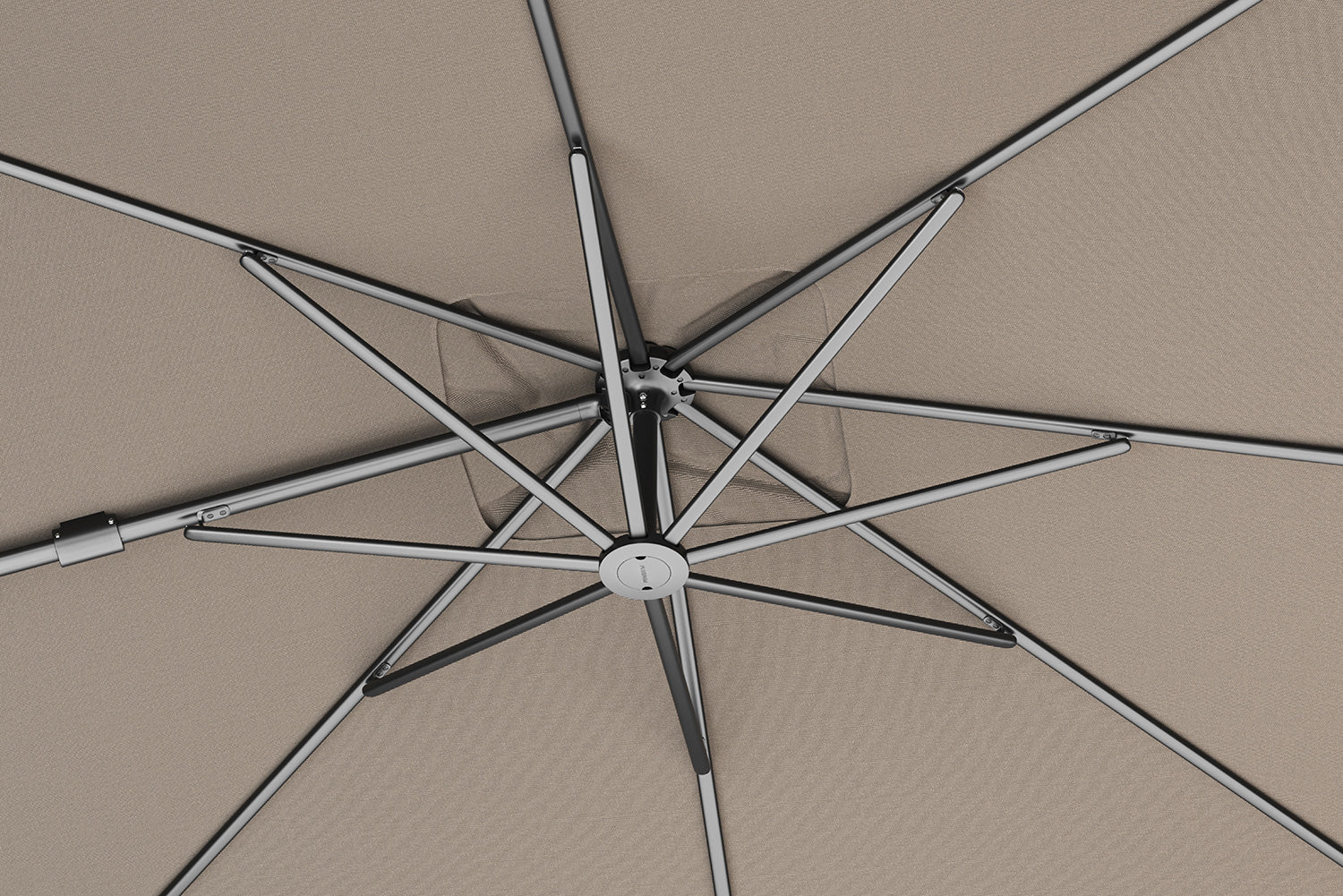 Parasollen är klädd i högkvalitativ tygklass 4 som erbjuder upp till 98 % UV-skydd och är både vatten- och smutsavvisande. Resultatet är ett parasoll som inte bara skyddar effektivt, utan också behåller sitt exklusiva utseende över tid.