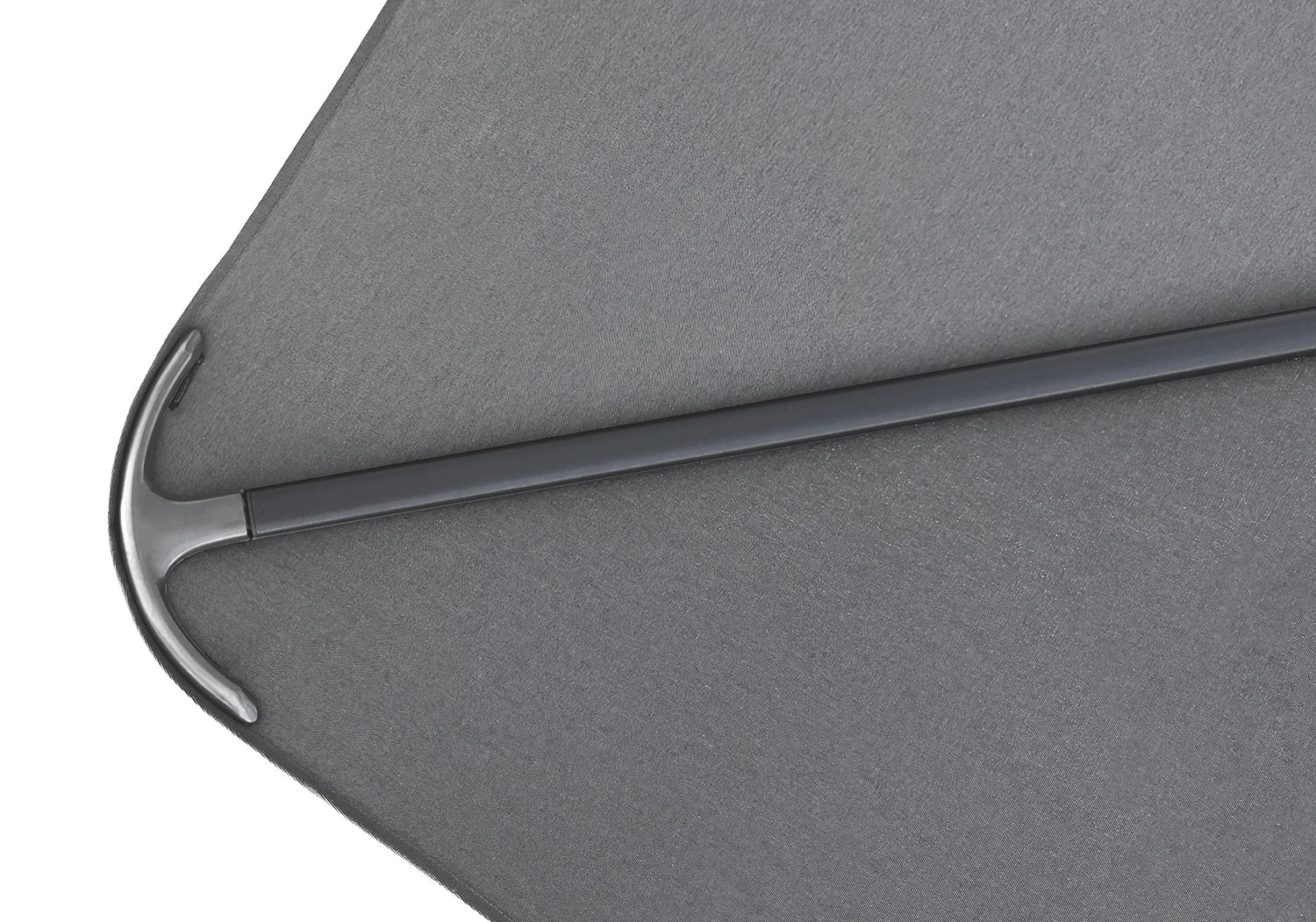 Parasollen är klädd i högkvalitativ tygklass 4 som erbjuder upp till 98 % UV-skydd och är både vatten- och smutsavvisande. Resultatet är ett parasoll som inte bara skyddar effektivt, utan också behåller sitt exklusiva utseende över tid.