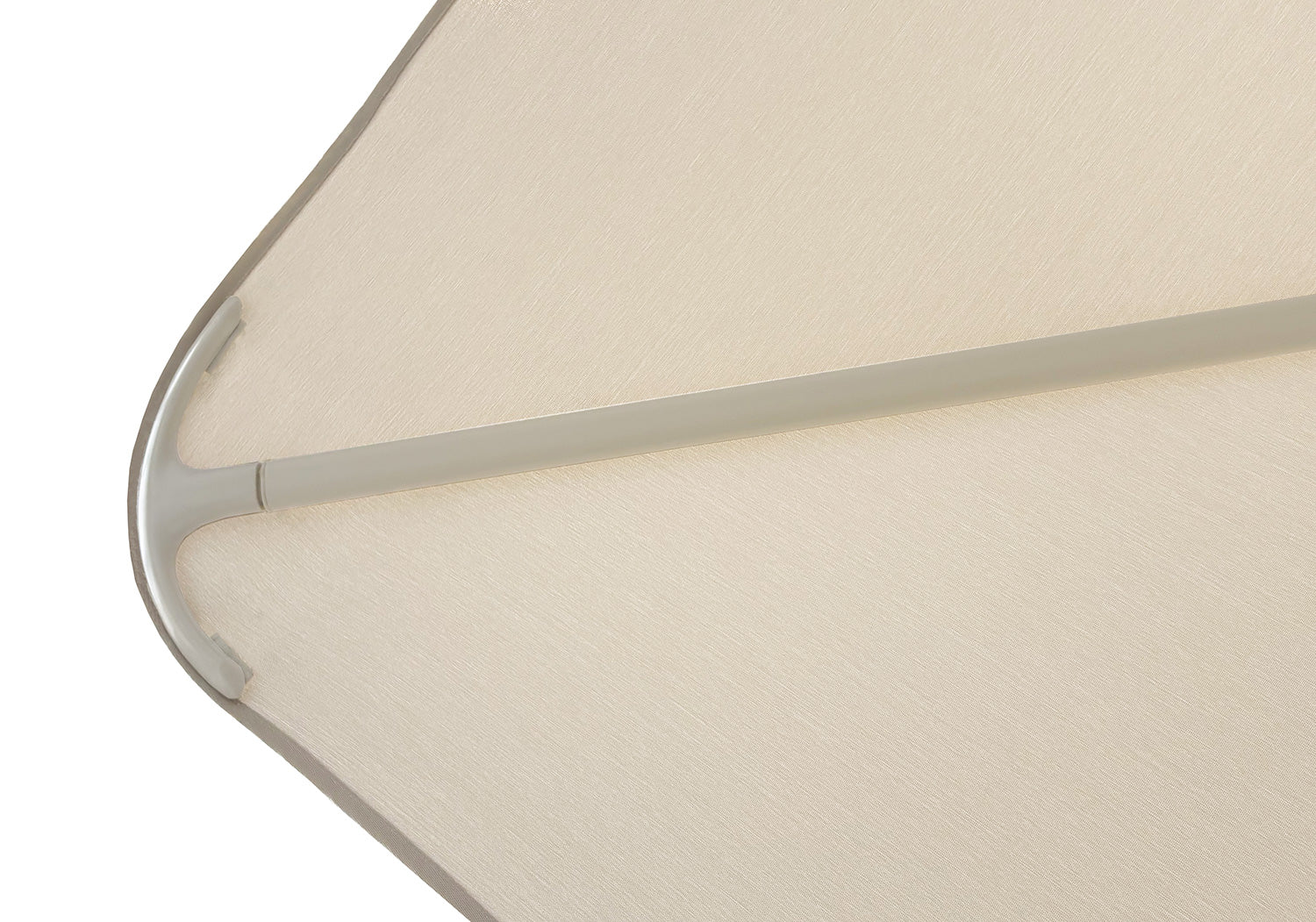 De mjukt flödande linjerna löper sömlöst från mast, ram och handtag hela vägen ut i de elegant vridna ribborna och den roterande fotens topp. Den minimalistiska designen förstärks av dolda infästningar och en exklusiv känsla där inget lämnas åt slumpen. De rundade hörnen på duken ger ett sofistikerat uttryck och en premiumfinish som märks direkt.
