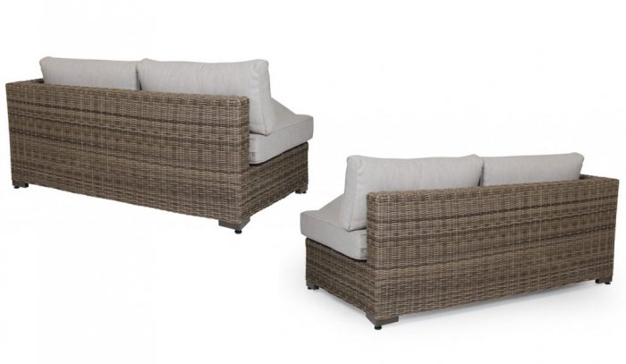 * I detta paket får du med två stycken 2-sits soffor. En med armstöd på vänster sida och en med armstöd på höger sida.