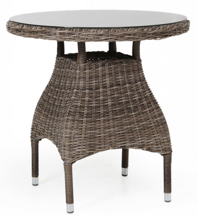 Ninja är ett klassiskt runt bord /cafebord från Brafab i konstrotting och härdat glas. Stomme i aluminium. Nu med en rustik lite tjockare konstrottingstråd. Helt underhållsfritt och finns i flera storlekar. Glöm inte att köpa till någon av de fina stolarna i Ninja serien.